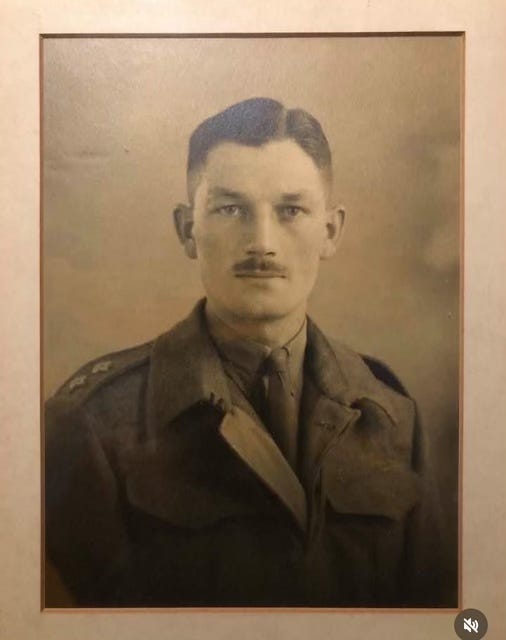 This is Arthur, my grandfather, newly commissioned around 1939. Six ft tall, handsome, newly married, serious, kind, a lover of nature. I only knew him as a child, a quiet, troubled man who would smoke cigarettes in the garage of his tiny house in Bickley, sipping surreptitiously from the bottle of vodka he kept there.